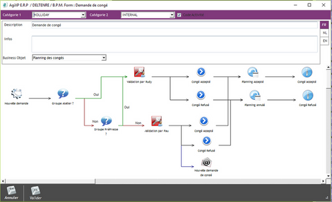 AgiXP propose également des fonctionnalités transversales jamais intégrées nativement dans un ERP de cette gamme, c’est ainsi qu’un puissant outil de modélisation BPM vous permet, sans aucune notion de programmation, de décrire tous les processus dont vous avez besoin : validations, approbations, circulation des documents, notifications automatique aux clients… tout comme un véritable CRM et une gestion documentaire capable de tracer, d’associer, archiver, historiser et planifier tous les documents, emails ou actions nécessaires à une communication optimale vers les différents interlocuteurs , internes et externes